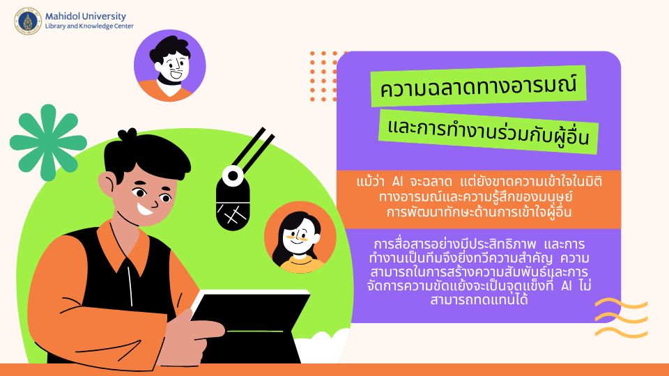 ในขณะที่ AI ฉลาดล้ำในเชิงตรรกะ แต่มนุษย์ยังคงครองความได้เปรียบในเรื่องของความรู้สึกและความเข้าใจในจิตใจ ความสามารถในการสื่อสารอย่างมีประสิทธิภาพ การเห็นอกเห็นใจผู้อื่น และการบริหารจัดการความสัมพันธ์ในทีม คือจุดแข็งสำคัญที่ AI ไม่สามารถเลียนแบบหรือทดแทนได้
