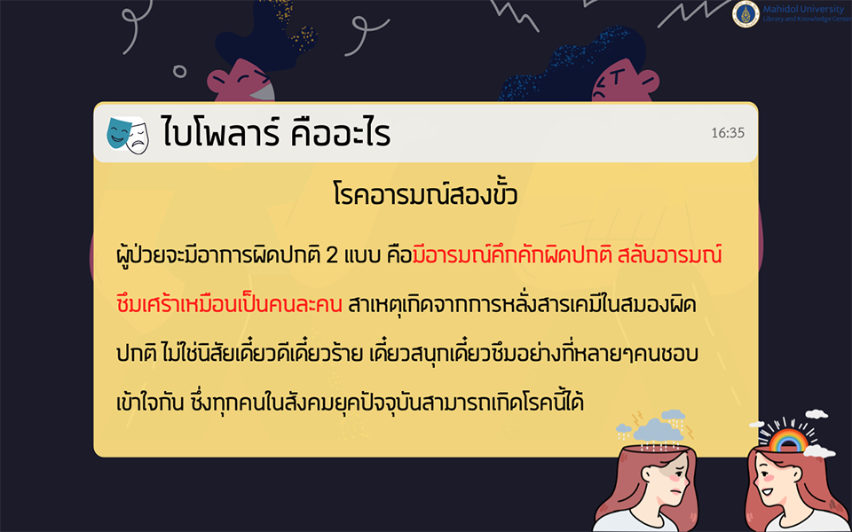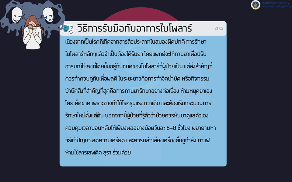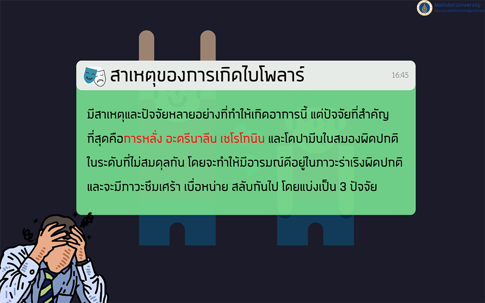 แม้ว่าปัจจุบันยังไม่สามารถหาสาเหตุที่แน่ชัดของโรคไบโพล่าได้ แต่เชื่อว่าเกิดจากปัจจัยหลายประการร่วมกัน เช่น พันธุกรรม เคมีในสมอง และปัจจัยด้านสิ่งแวดล้อม ซึ่งอาจทำให้สมองไม่สามารถควบคุมการเปลี่ยนแปลงทางอารมณ์ได้อย่างมีประสิทธิภาพ การรู้จักสัญญาณและอาการของโรคไบโพล่าตั้งแต่เนิ่นๆ จะช่วยให้ผู้ป่วยได้รับการวินิจฉัยและการรักษาที่เหมาะสมได้ทันท่วงที