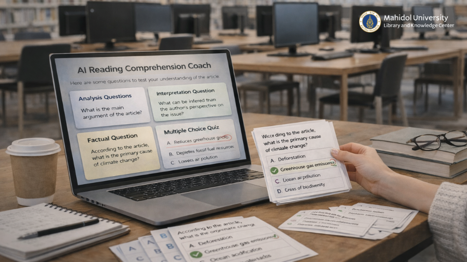 สมมุติว่าคุณต้องอ่านบทความเพื่อเตรียมสอบ แต่ไม่รู้ว่าควรฝึกอย่างไรให้เข้าใจจริง AI สามารถสร้างคำถามเพื่อทดสอบความเข้าใจ เช่น