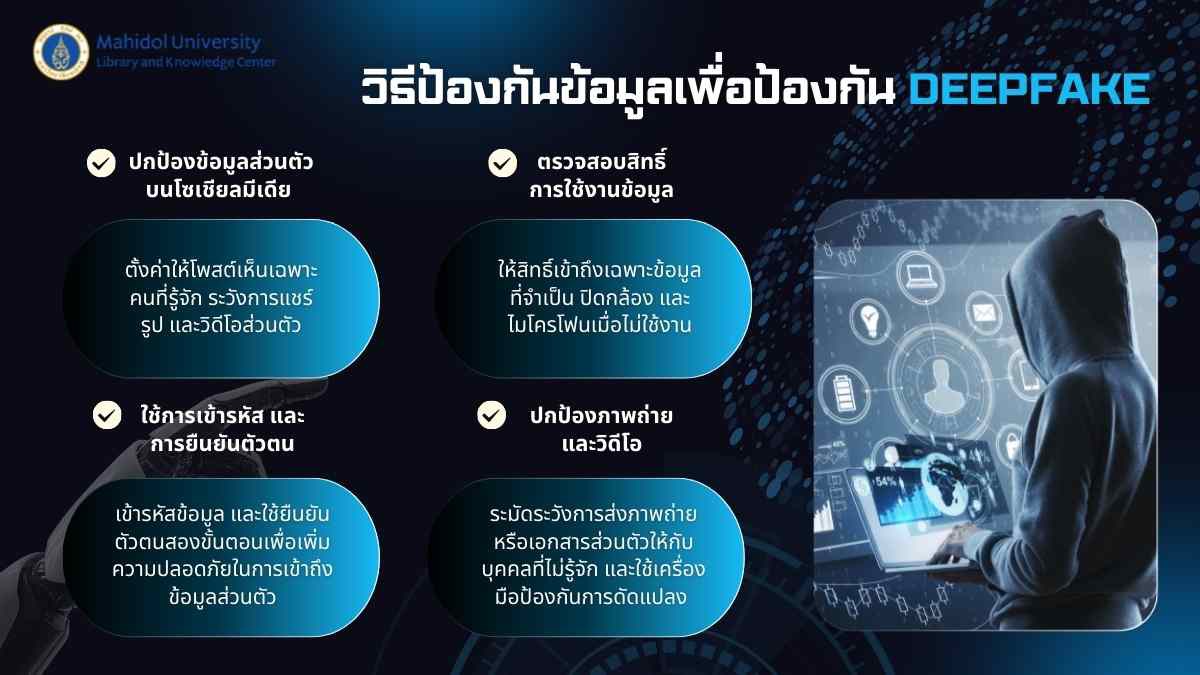 การปกป้องข้อมูลส่วนบุคคล เช่น การตั้งค่าความเป็นส่วนตัว การจำกัดการเข้าถึง และการใช้ระบบยืนยันตัวตนเป็นแนวทางสำคัญในการป้องกันการนำข้อมูลไปใช้ในทางที่ผิด