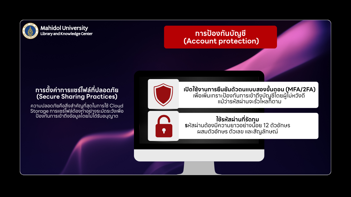ความปลอดภัยคือสิ่งสำคัญที่สุดในการใช้ Cloud Storage การแชร์ไฟล์ต้องทำอย่างระมัดระวังเพื่อป้องกันการเข้าถึงข้อมูลโดยไม่ได้รับอนุญาต