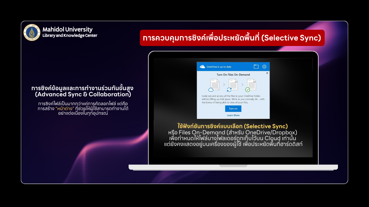 2.2 ควบคุมการซิงค์เพื่อประหยัดพื้นที่ (Selective Sync):