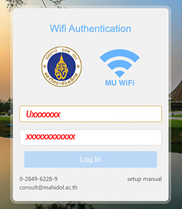 1.นักศึกษา login ผ่าน MU WIFI กรอก Username และ Password ของนักศึกษา