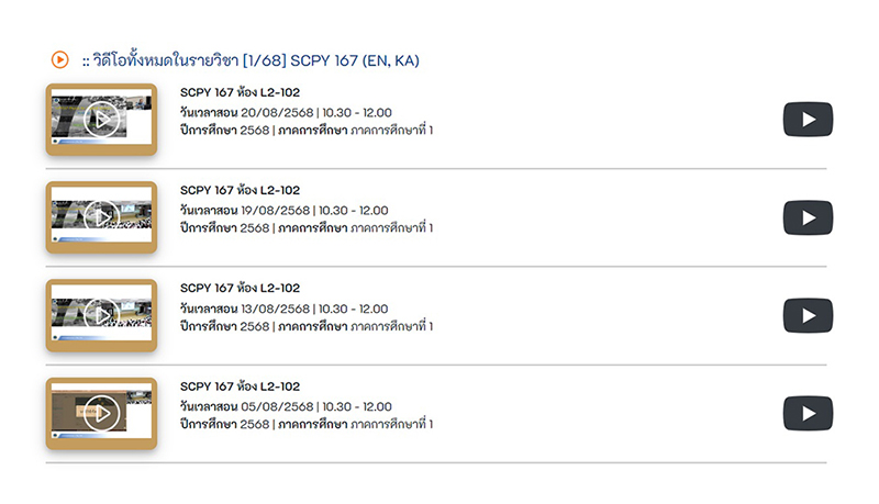 4. คลิกค้นหา จะพบไฟล์ที่นักศึกษาต้องการทบทวนบทเรียนย้อนหลัง