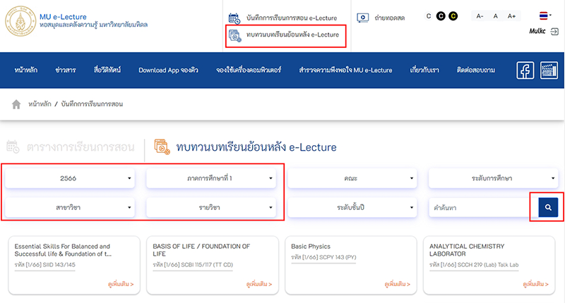 2. เข้าสู่หน้าเว็บไซต์ MU e-Lecture ล็อกอินเข้าใช้งานเว็บไซต์ตามปกติ