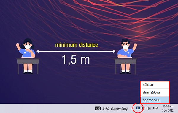 10. เมื่อท่านเข้าใช้งานเสร็จแล้ว กรุณากด “ออกจากระบบ” ที่ Taskbar เพื่อให้ผู้อื่นสามารถใช้งานต่อได้