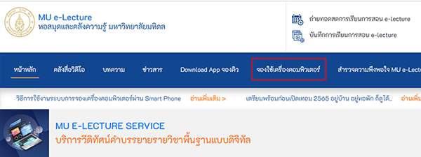 คู่มือการจองคอมพิวเตอร์ที่หน้าเว็บไซต์ MU e-Lecture