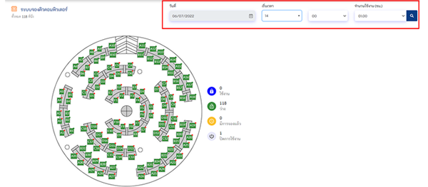 5. ระบุ วันที่/ช่วงเวลาการใช้งาน/จำนวนชั่วโมงที่ต้องการใช้งาน กดค้นหา