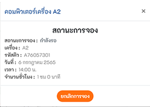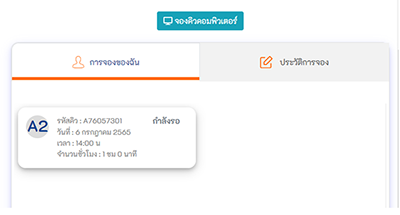 9. เมื่อถึงเวลาเข้าใช้งานสามารถนำ "รหัสคิว" ที่ปรากฎในหน้าการจองของฉัน มาลงทะเบียนที่หน้าเครื่องคอมพิวเตอร์